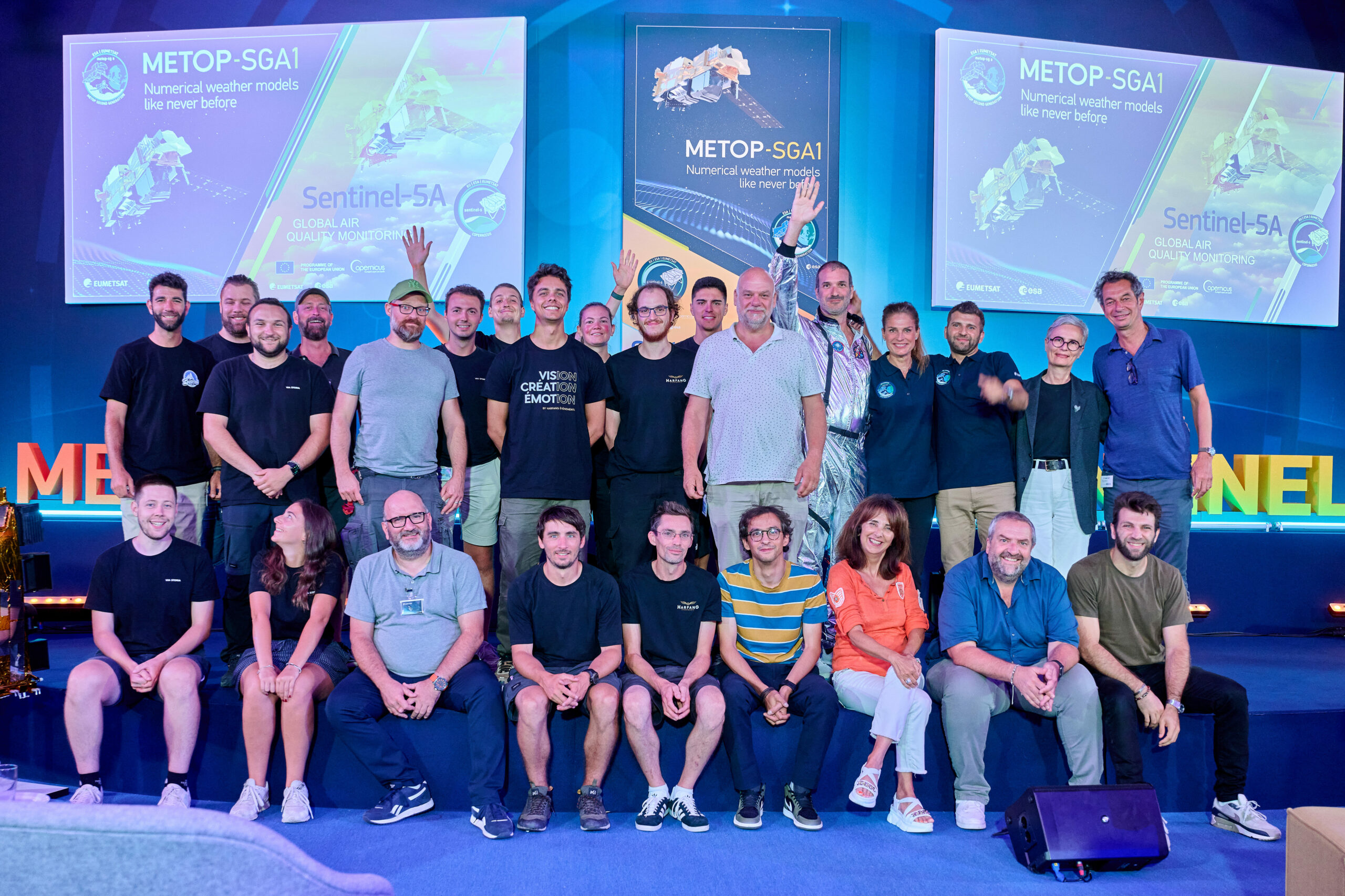 Dans la nuit du 12 au 13 août, le siège d’EUMETSAT à Darmstadt (Allemagne) s’est transformé en scène de fête pour célébrer le lancement du satellite Metop-SGA1. Un événement hors norme, débuté à minuit et prolongé jusqu’à 4h30 du matin, qui a réuni plus de 350 participants malgré l’horaire tardif.
